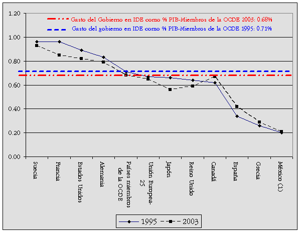 experimental como porcentaje del PIB, 1995 y 2003