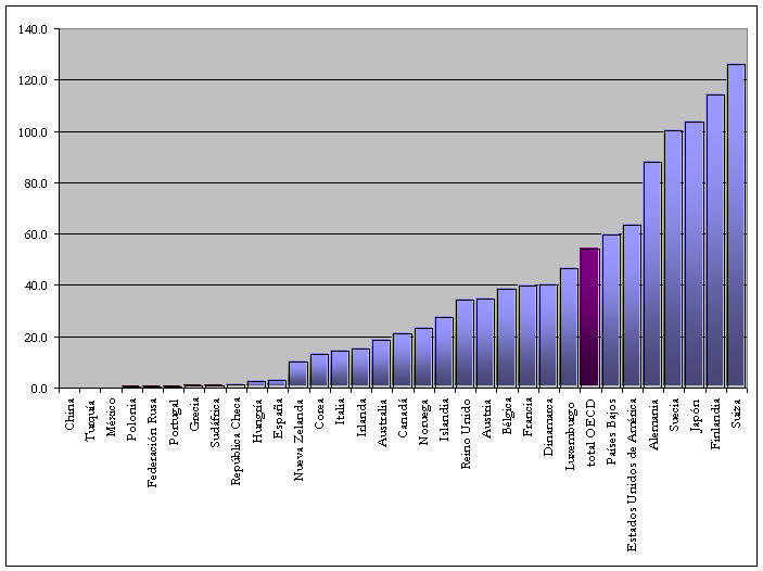 Fuente: Organización para la Cooperación y el Desarrollo Económicos, OECD Country Statistical Profiles 2006,