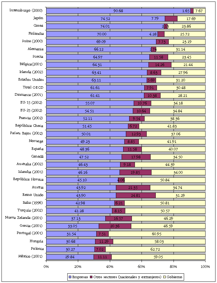 Fuente: Organización para la Cooperación y el Desarrollo Económicos: Science, Technology and Industry Scoreboard 2005.