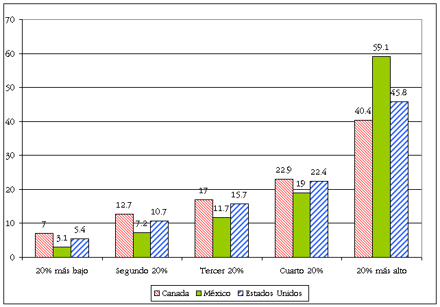 Para México y Estados Unidos corresponde al año 2000. Para Canadá corresponde a 1998.