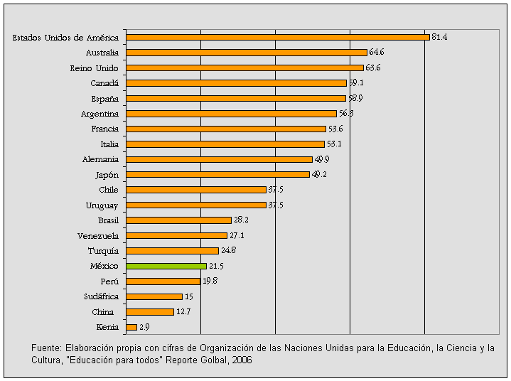 Porcentaje de cobertura en educación superior por países seleccionados