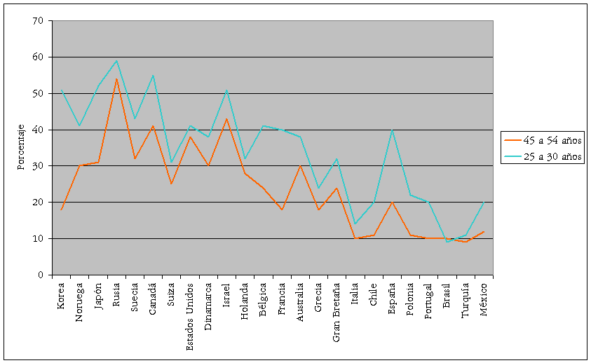 Fuente: OECD: Education at a glance, 2006. p.31 Modificada del original.