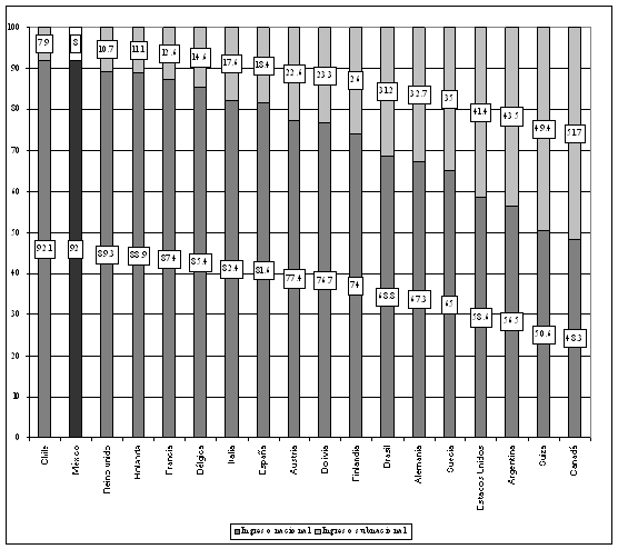 Fuente: Elaboración propia con base en estadísticas del Fondo Monetario Internacional (FMI) 2004).