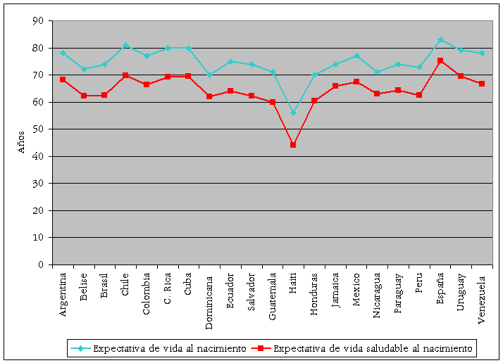 Nota: La expectativa de vida saludable se construye descontando un promedio de años en enfermedad.