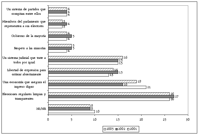 Pregunta: La gente a menudo difiere en sus puntos de vista sobre las características más importantes de la democracia.