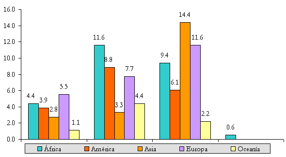 Fuente: Cuadros realizados con la información de la Unión Interparlamentaria, base de datos Parline, Naciones Unidas, Estados Unidos, 2006, en: www.ipu.org/parline-e/parlinesearch.asp (Consulta: 14 agosto 2006). Porcentaje del total de 181 países comparados.