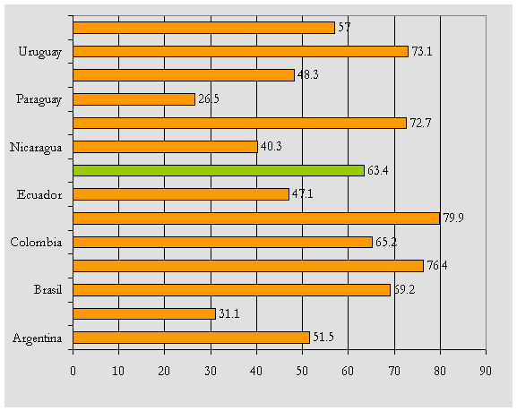 Los datos para Brasil, Chile, México y Nicaragua corresponden al 2003.