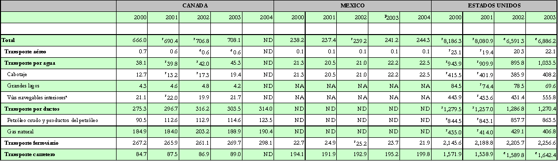Tráfico doméstico de carga según modo de transporte. Canadá, México y Estados Unidos