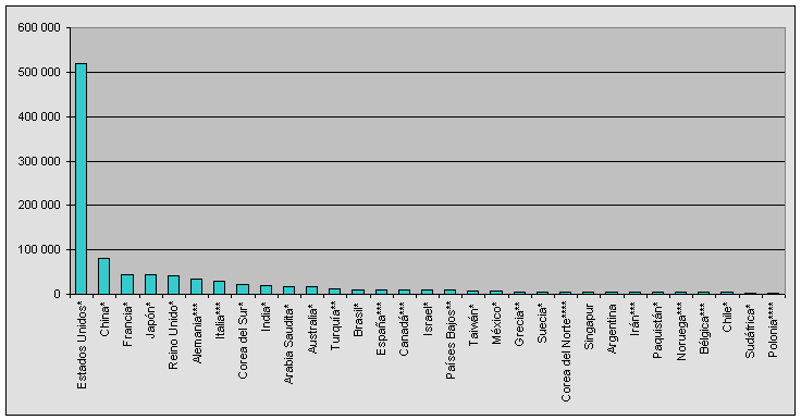 Fuente: Agencia Central de Inteligencia (CIA), The World Factbook, sección sobre el ejército. En: www.cia.gov/cia/publications/factbook/rankorder/2034rank.html (consulta: 20 de agosto de 2006).