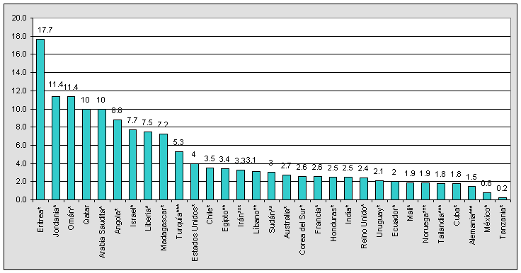Fuente: Fuente: Agencia Central de Inteligencia (CIA), The World Factbook, sección sobre el ejército. En: www.cia.gov/cia/publications/factbook/rankorder/2034rank.html (consulta: 20 de agosto de 2006).