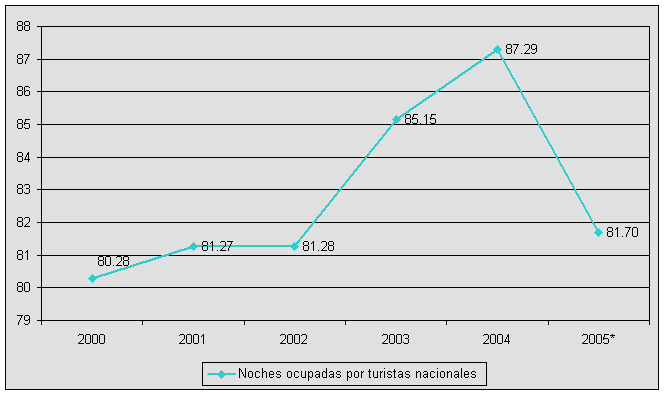Noches ocupadas por turistas nacionales, 2000-2005