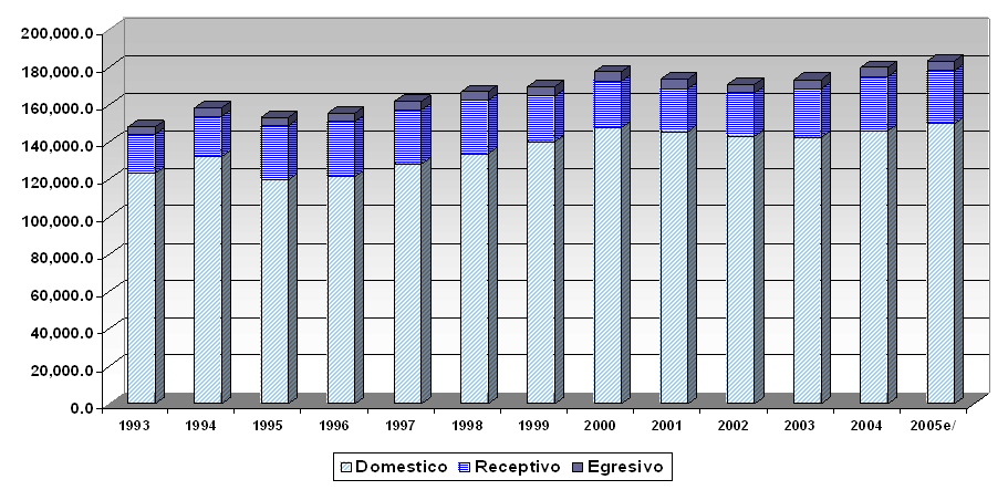 Fuente: Instituto Nacional de Estadística, Geografía e Informática. Cuenta Satélite de Turismo de México.
