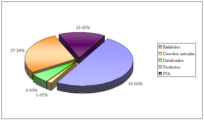 Distribución porcentual de las ganancias generadas por una película en México 2004.