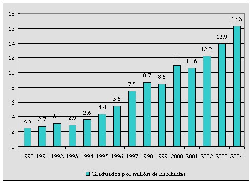 Fuente: Para 1990-1994: CONACYT. Informe General del Estado de la Ciencia y la Tecnología, 2004 México, D.F., 2004