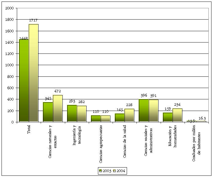 Egresos de doctorado según área de la ciencia 2003-2004