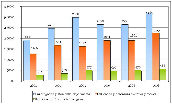 Presupuesto administrado por el Consejo Nacional de Ciencia y Tecnología según actividad,
