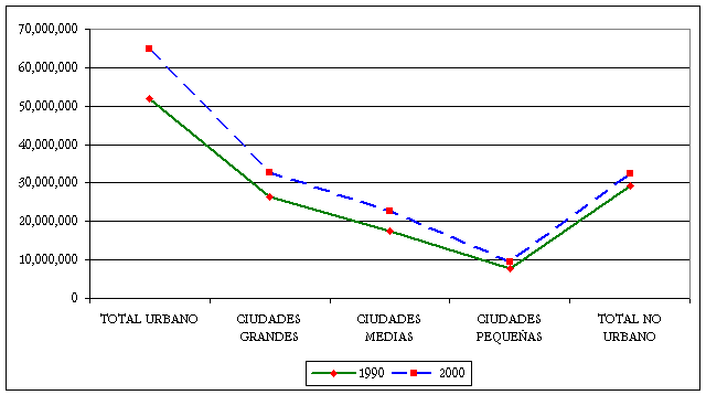 Clasificación del las ciudades del Sistema Urbano Nacional: Población, 1990-2000