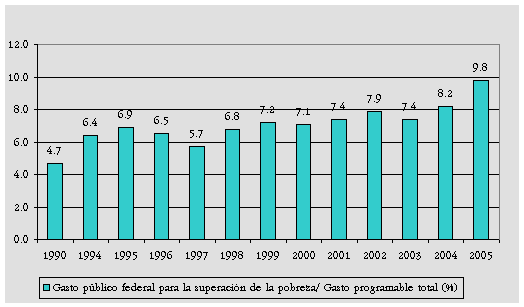 Notas: Debido a que la SEP actualizó la información relativa al gasto realizado vía Ramo 33 en Telesecundarias, las cifras del gasto del Gobierno Federal en programas para superar la pobreza cambian desde 1998 a 2004, y en este sentido se actualiza la información relacionada con dicho gasto.