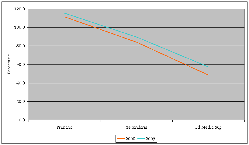 El mayor porcentaje de niños en edad de cursar y matriculados puede deberse a grupos de otras edades cursando primaria