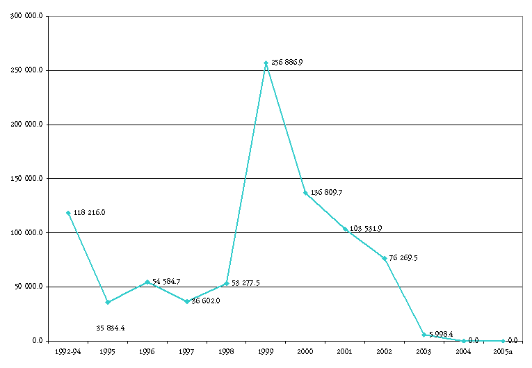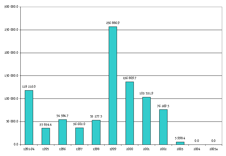 Asignación presupuestal de la vertiente productiva: Fondos y fideicomisos del Fondo Nacional de Empresas en Solidaridad de 1992 a 1995.