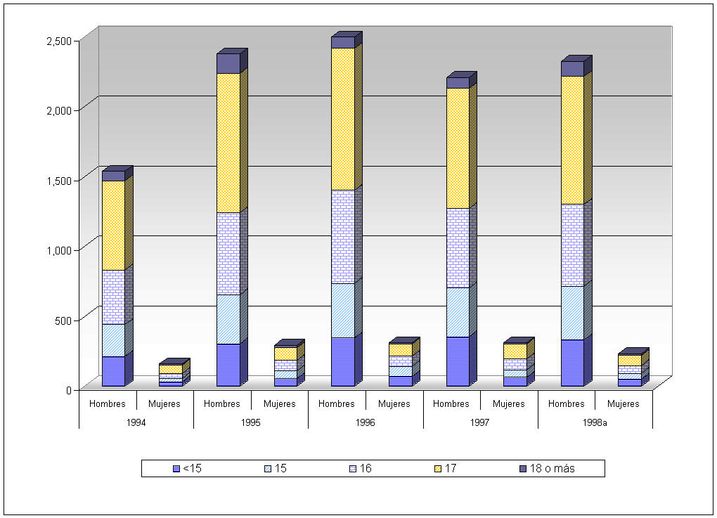 Ingresos al Consejo de Menores por edad según sexo 1980 - 1998