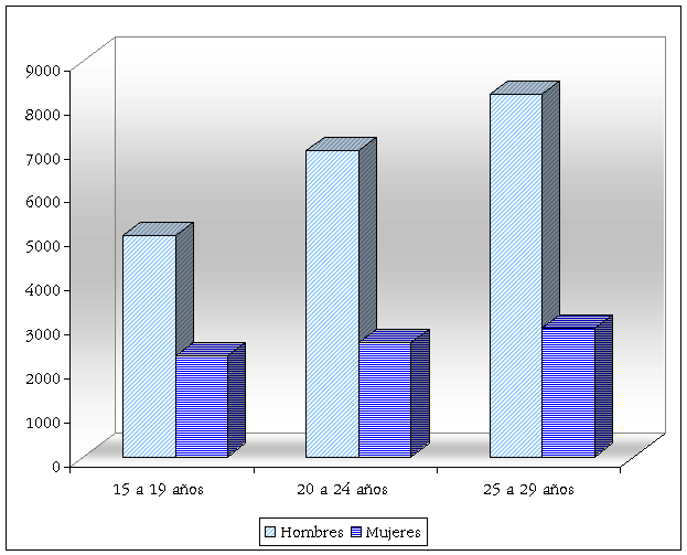 Defunciones de jóvenes de 15 a 29 años por sexo, 2003