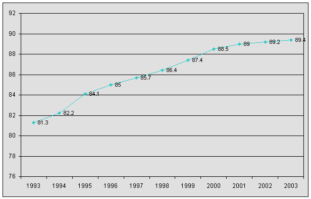 Población con acceso a agua potable, 1993-2003