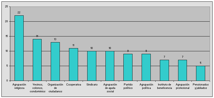 (porcentaje de quienes dijeron formar o haber formado parte de las siguientes organizaciones)