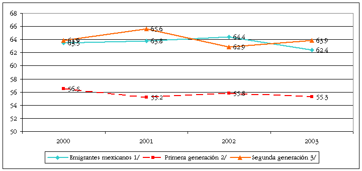 Fuente: Estimaciones del Consejo Nacional de Población, con base en Bureau of Census, Current Population Survey, de marzo de 2000, 2001, 2002 y 2003.