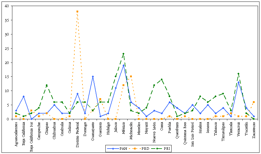 Composición de la LIX Legislatura PAN, PRI y PRD por estado