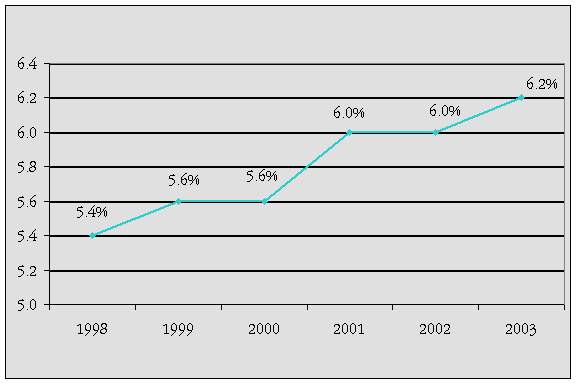 Gasto de México en salud como porcentaje del PIB 1998-2003