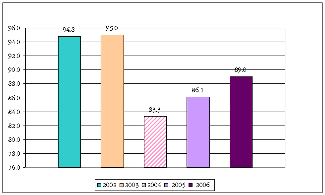 % Cobertura del programa Arranque Parejo en la Vida 2002-2006