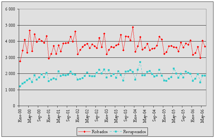 Robo de autos y su recuperación a nivel nacional 2000-2006