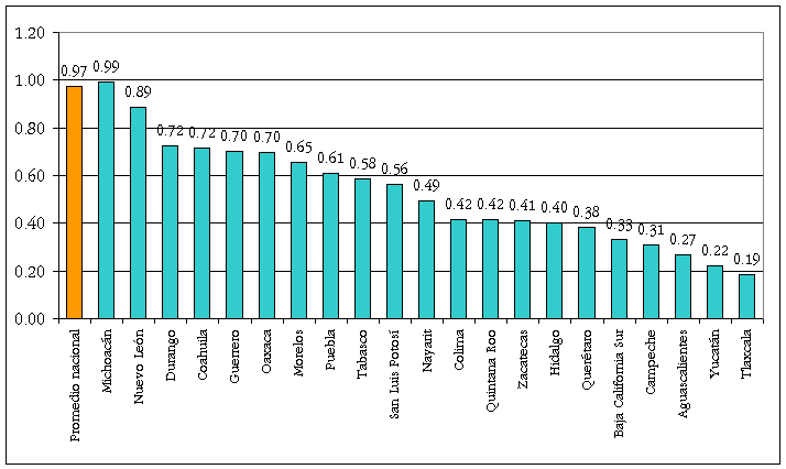 Fuente: Instituto Nacional de Estadística, Geografía e Informática, Cuaderno de estadísticas judiciales, números 8 y 12, INEGI, México, 2000 y 2004, respectivamente; disponibles en https://www.inegi.gob.mx/est/contenidos/espanol/proyectos/coesme/programas/rel_biblio.asp, fecha de consulta 27 de diciembre de 2005.