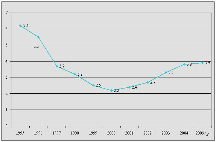 Fuente: Instituto Nacional de Estadística, Geografía e Informática. Encuesta Nacional de Empleo y Encuesta Nacional de Empleo Urbano, en www.inegi.gob.mx (fecha de consulta: 21 de agosto de 2006).