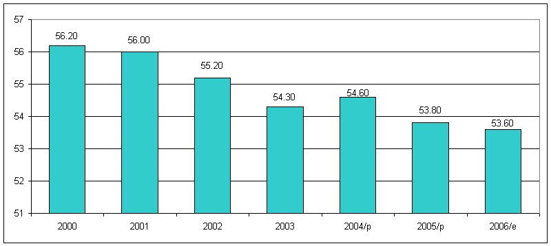 y 2005 se trata de cifras preliminares, para 2006 se trata de cifras estimadas.
