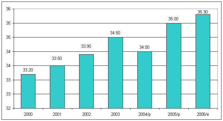 y 2005 se trata de cifras preliminares, para 2006 se trata de cifras estimadas.