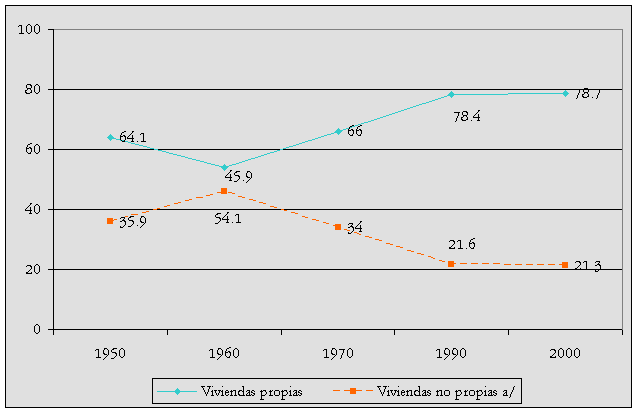 a/ En 1950, 1960 y 1970 se captó solamente la vivienda propia y la diferencia se