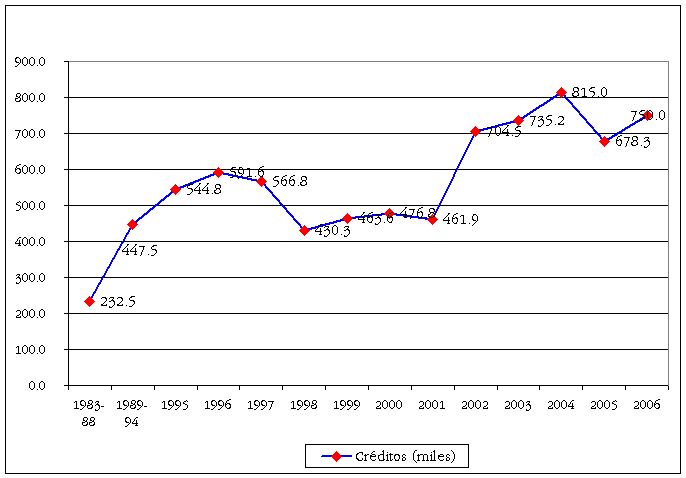 Numero de créditos otorgados para viviendas, 1983-2006